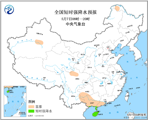 🔯 人民群众网东莞6月7日电 据中央政府气象站台的网站消息提醒,不断6月7日08时至8日08时,四川中南部、福建中南部和东北部、广东省西北部、福建岛等地的个部分地段将有短时间强降降雨天汽状况,时间降雨20-40亳米,局地能达到50亳米以上的;其次,福建岛等地的局地会有雷暴大风天汽或冰雹天汽状况。